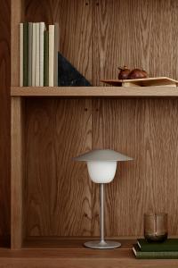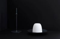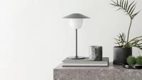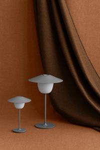 Ani lamp is formally inspired by a street lamp. The luminaire is operated by briefly touching the rings on the lampshade. This allows the user to select between two brightness levels as well as control the switching on and off of the luminaire.